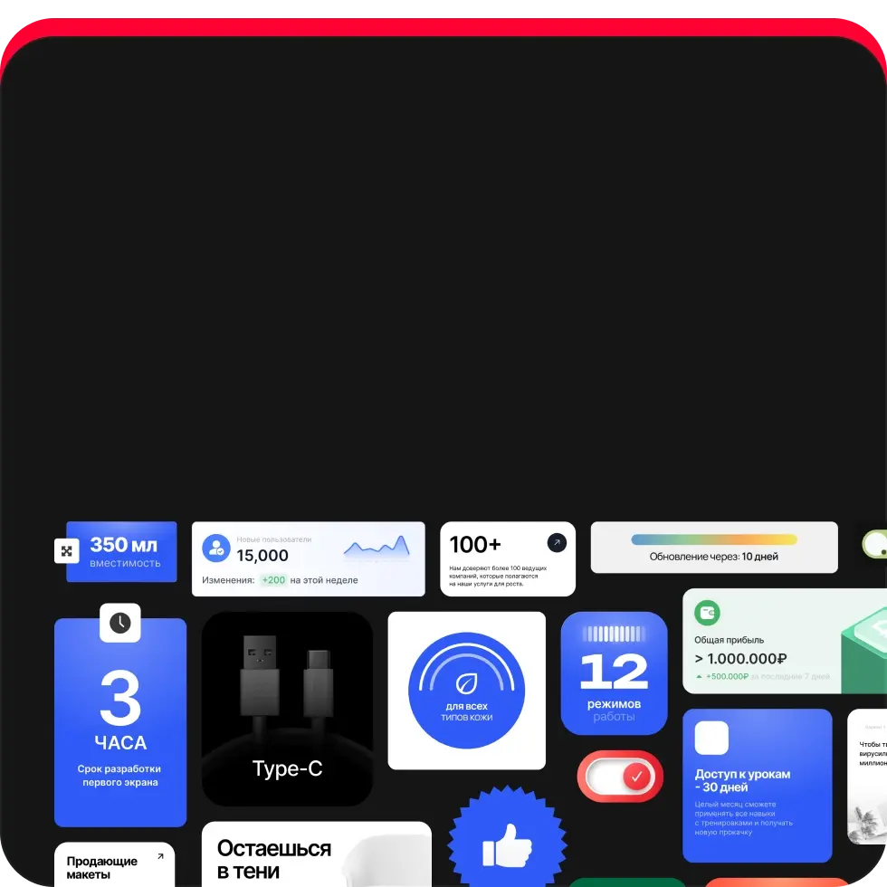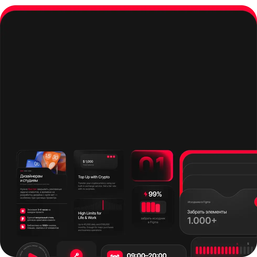 Внутри вы найдёте: баннеры для соцсетей и рекламы, макеты для сторис, наборы UI-элементов (кнопки, плашки, бейджи), цветовые палитры и подобранные шрифтовые пары.